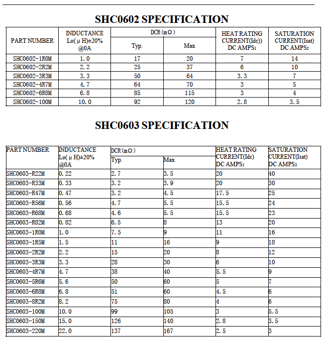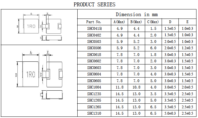 (長、寬、高):0415 0402 0503 0506 0618 0602 0603 0604 0605 1004 1235 1205 1265 1310等體積